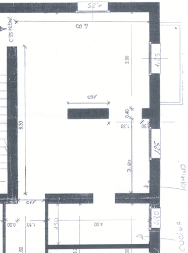Desidero avere una vostra consulenza. Vi volevo chiedere se mi fate uno schizzo del salone e della cucina. La parte del salone dopo la cucina in rustico e l'altra moderna, mentre per la cucina dato che è piccola qualche soluzione molto funzionale.
